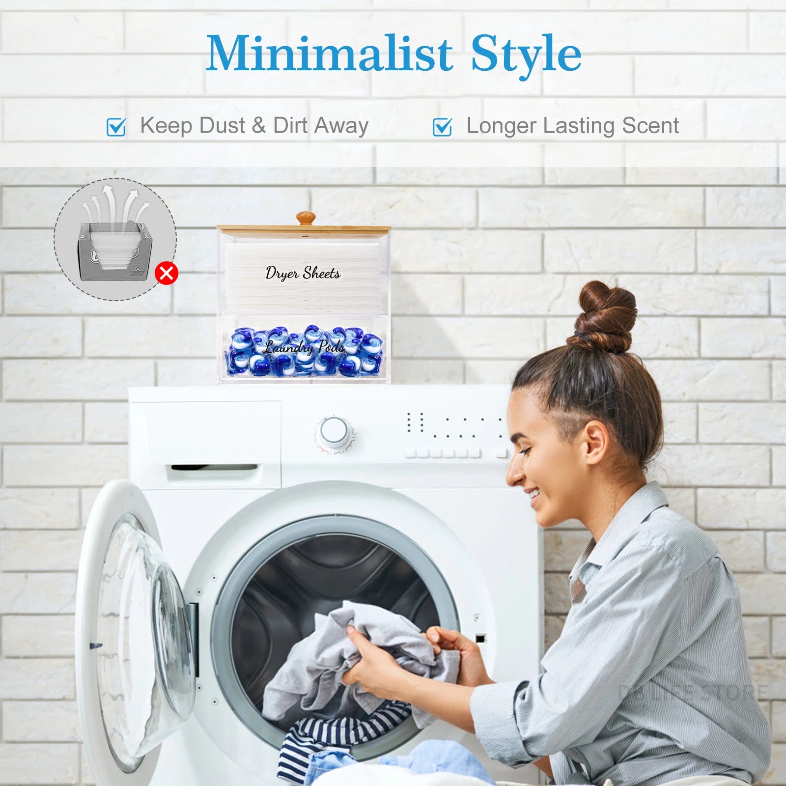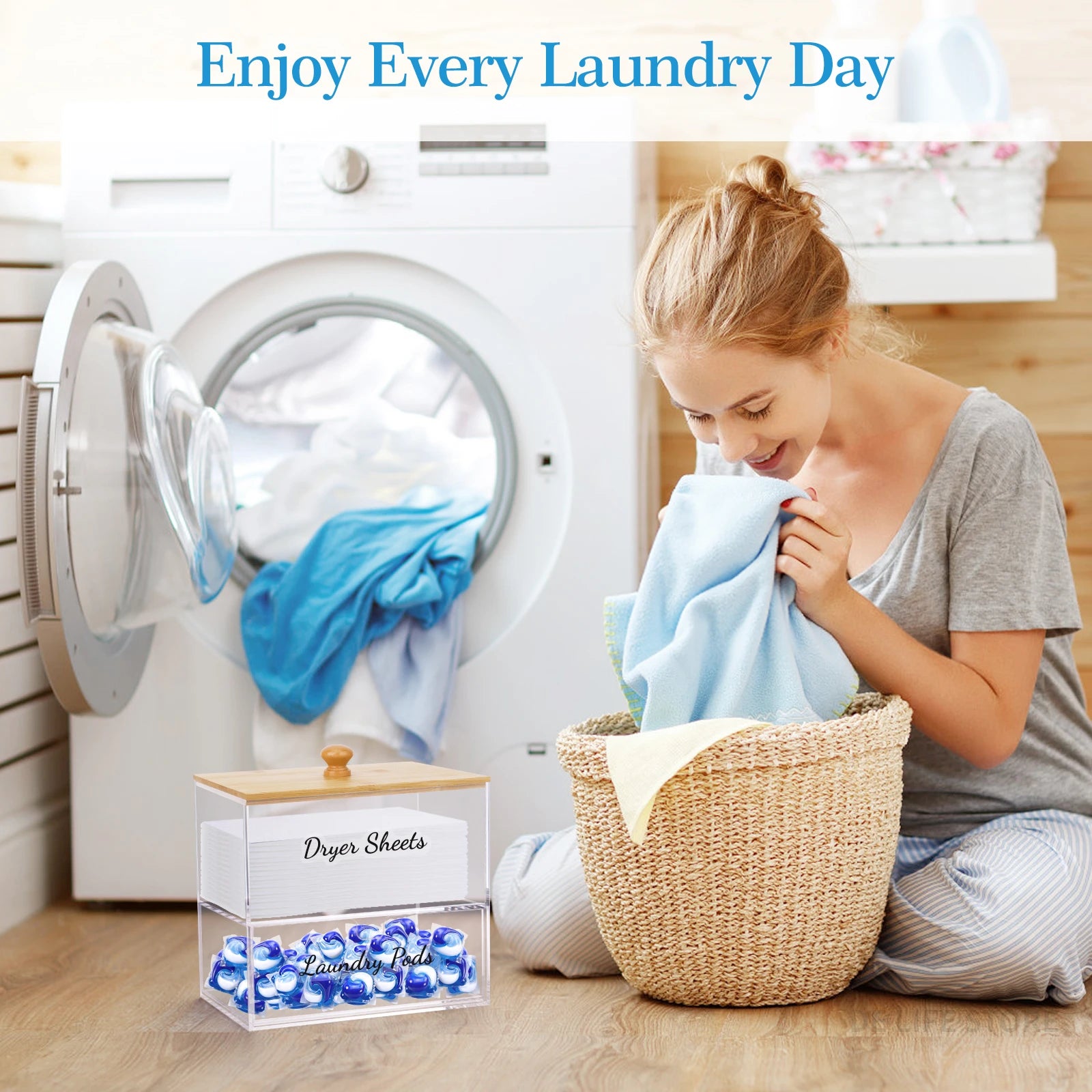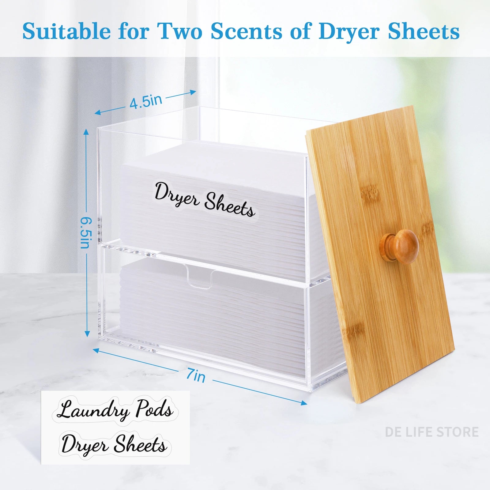 Double-Layer Acrylic Storage Box with Bamboo Lid – Dryer Sheet & Laundry Pod Organizer